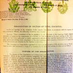 Figure Three – is an enlargement of the Vital Statistics Section’s purpose. The wording of the Vital Statistics Section’s original purpose explicitly illustrates the priority the then Association placed on heath information as an essential base to advance public health, in the words of the day, the public’s hygiene and sanitation. This overall mandate serves to comparatively connect us over the ensuing decades to the work of the current Applied Public Health Statistics Section. The phrasing and style of writing have surely changed as has scope, quantity and quality of information grown, but the essential major themes of the critical importance of reliable personal community health information, tracking trends of specific health events comparable over time and across communities and nations meeting comparable international standards is an enduring continuing goal and aim. A closing note on the imperatives to preserve and record our history: the images of the page of the fold out action forming the Vital Statistics Section was provided by the APHA Resource Center and Archives and is both brittle and fragile having been pieced together from five different fragments. The poor condition of these latter illustrations adds another subtext message that reflect the urgency of the need to preserve our history. Published on the paper of the time, the printed documents of the earlier years of APHA are subject to ever more rapid deterioration.